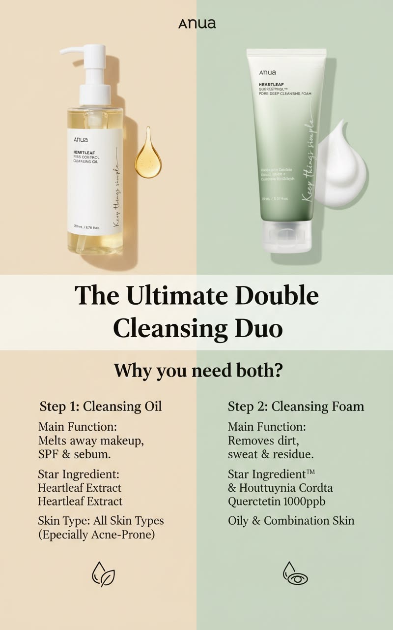 Duo Double Nettoyage ANUA – Huile + Gel Nettoyant Heartleaf